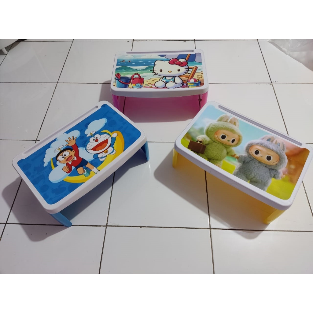 Meja Belajar Anak Lipat Plastik Karakter Dengan Tempat Laci Penyimpanan