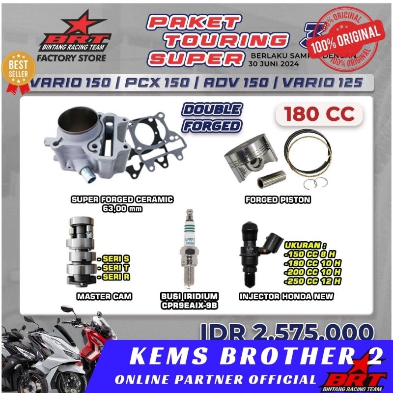 FLASH SALE PAKET BORE UP VARIO 150 PCX 150 180 CC BRT TOURING SUPER 3 VARIO 150PCX 150ADV 150VARIO 125 ( blok piston kit noken as brt injektor brt busi brt )