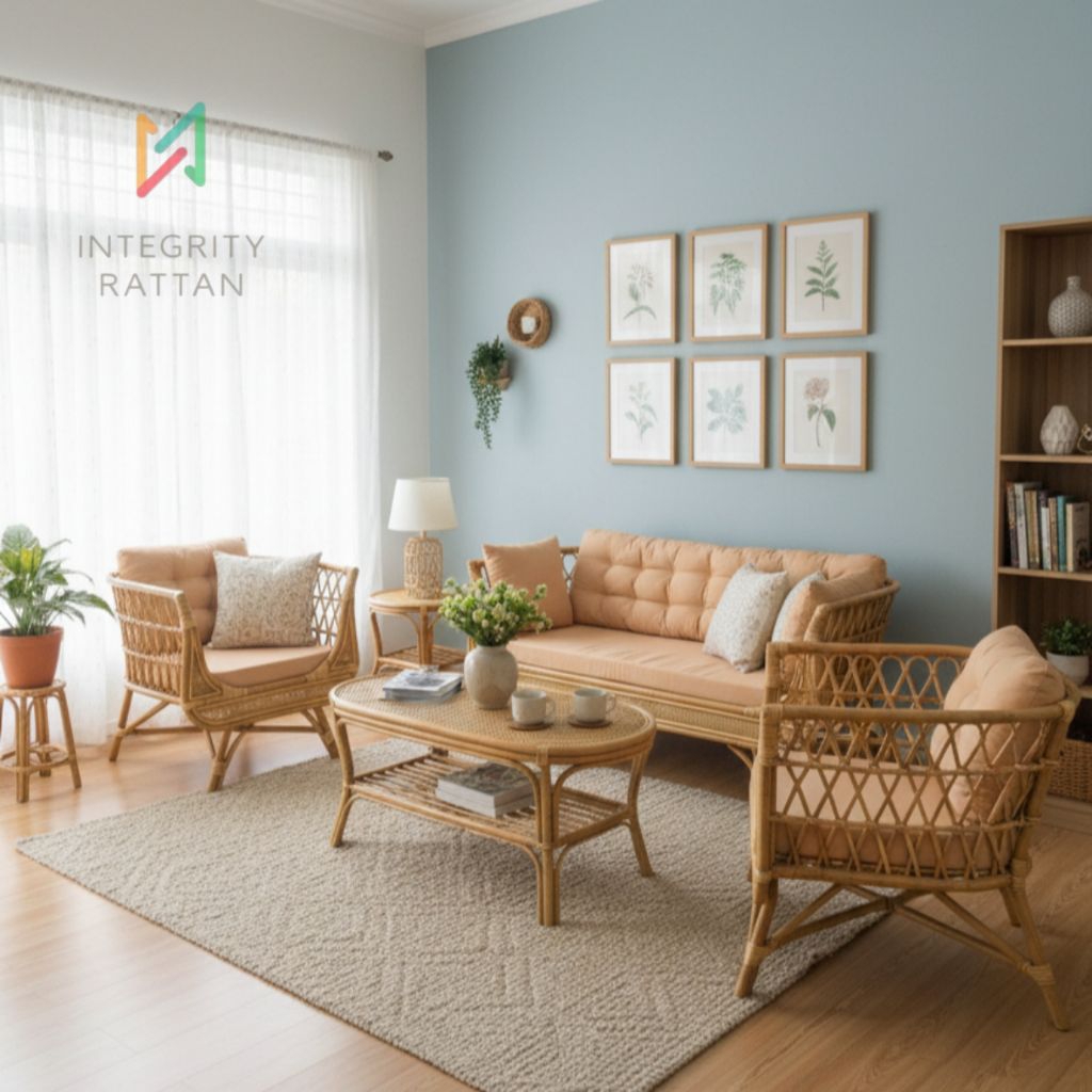 Set Kursi Sofa Bianca Plus Meja Rotan Alami Minimalis Furnitur Aesthetic