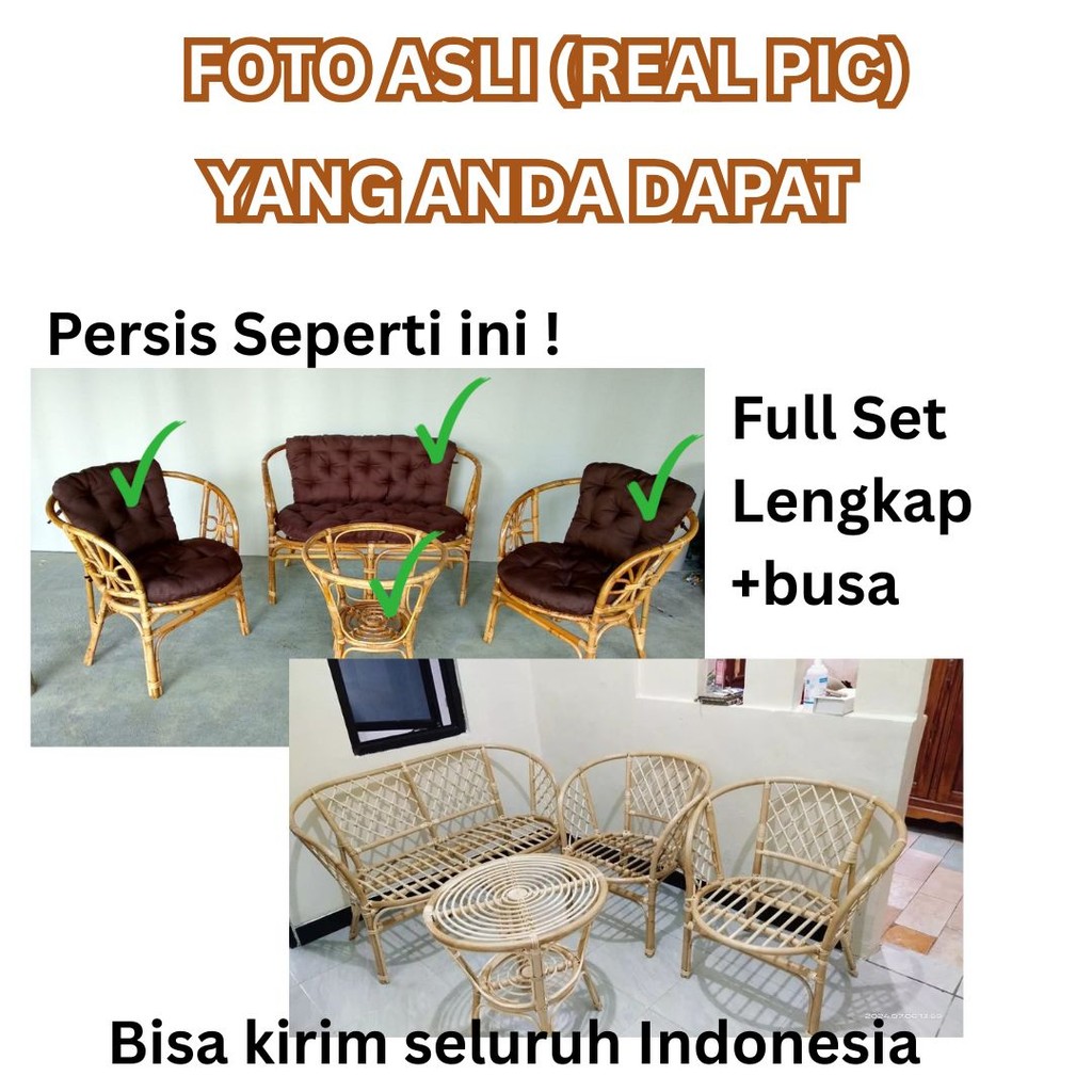 SET KURSI TAMU BAHAMA ROTAN ALAMI (TANPA KACA) / KURSI ROTAN MINIMALIS / KURSI TAMU ROTAN