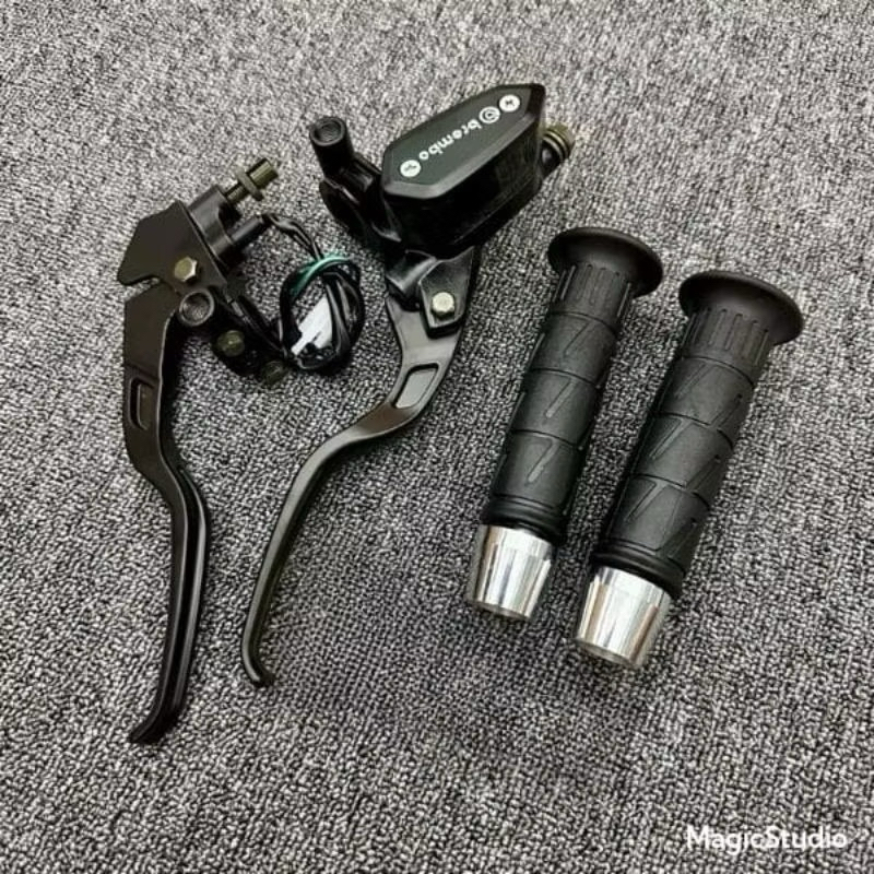 PAKET Master Rem Tabung Tipe OVAL Kotak + Handgrip YAMAHA + Jalu Stang Chrome Model PCX Bisa Untuk Semua Tipe Motor UNIV