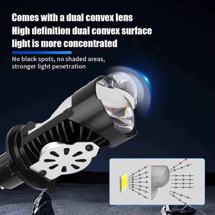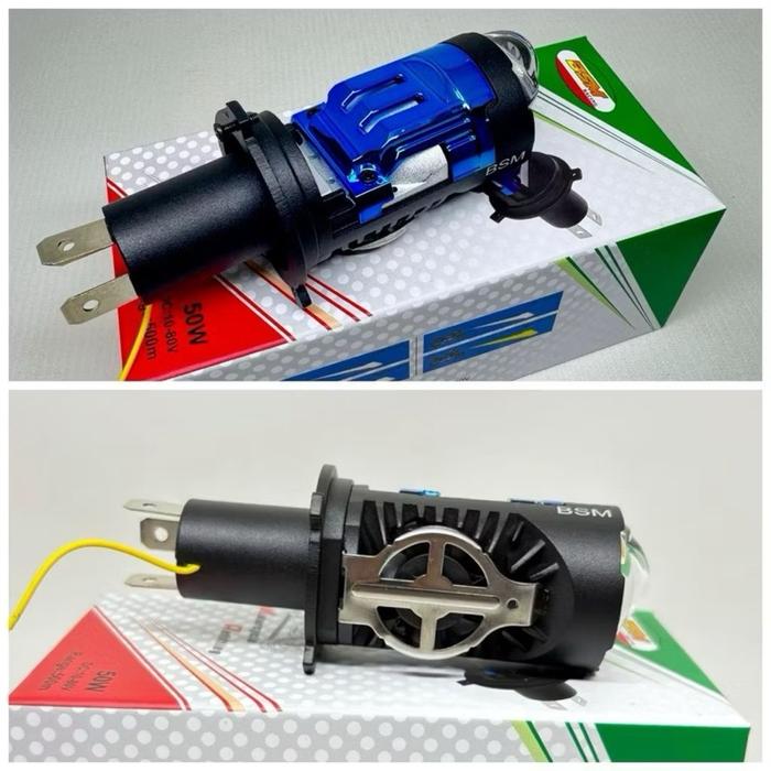 LAMPU UTAMA H4 PROJECTOR ORIGINAL BSM LED PNP AC DAN DC DENGAN KIPAS PENDINGIN FULL ALUMINIUM MOTORCYCLE - H4-DEVIL RED,