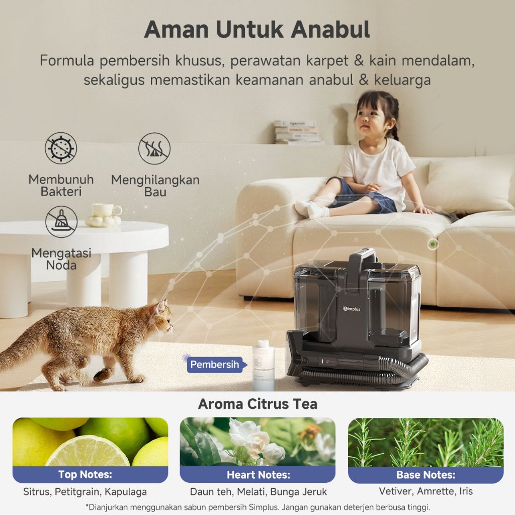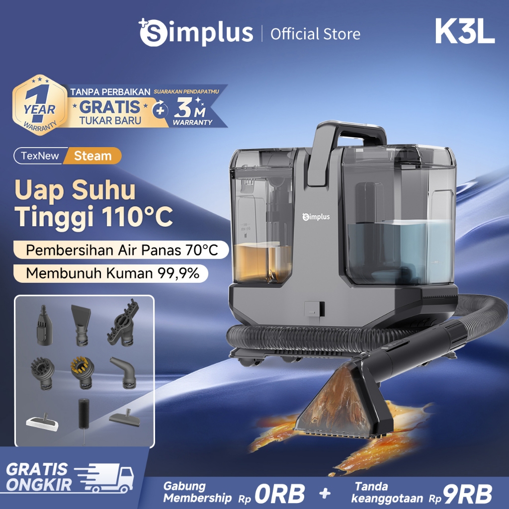 Simplus Pembersih Karpet & Kain Uap 110°C 18.000Pa Tangki Ganda 2,3+1,4L Untuk Sofa Karpet Kasur Dapur