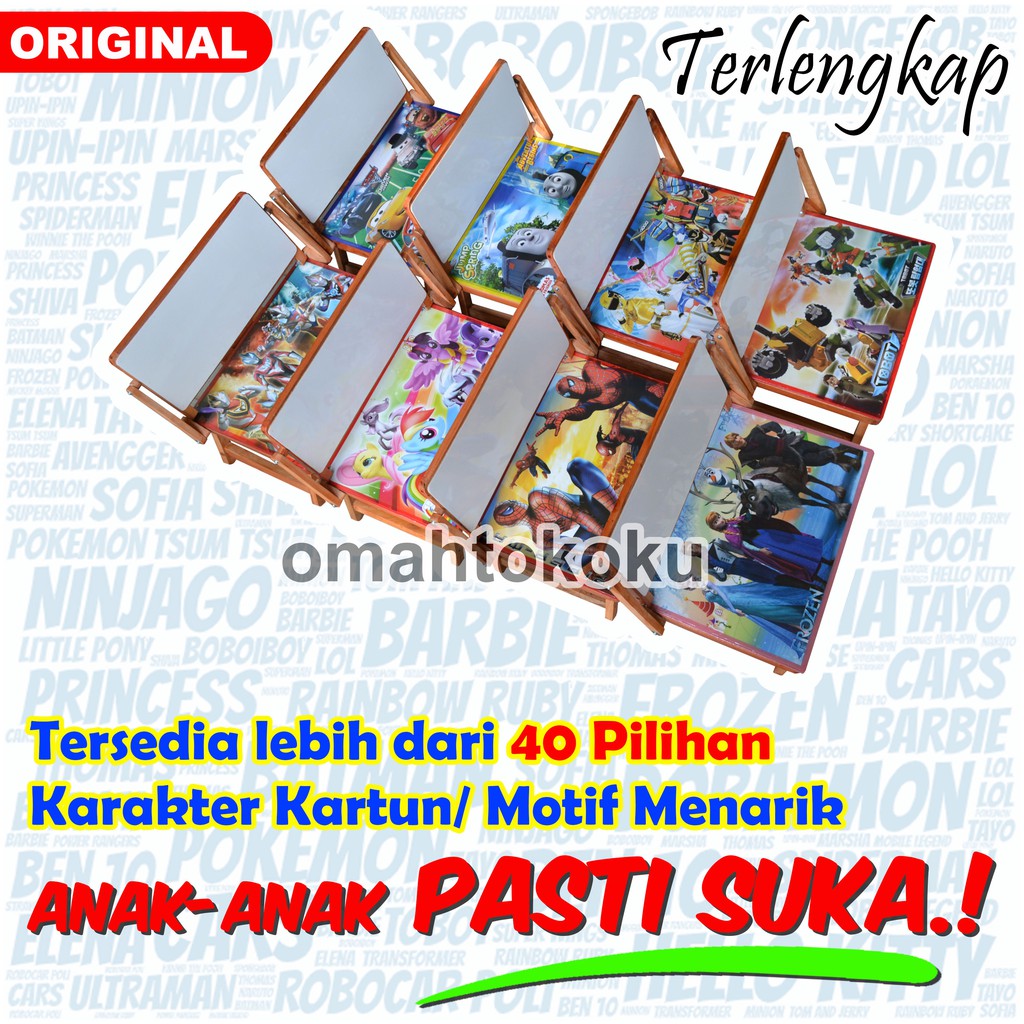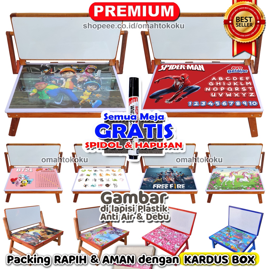 Meja Belajar Anak, Meja Lipat Anak Minimalis Karakter + Whiteboard Portable Serbaguna omahtokoku