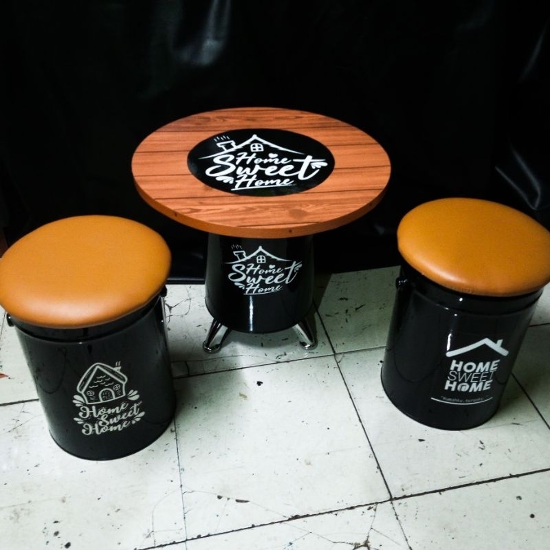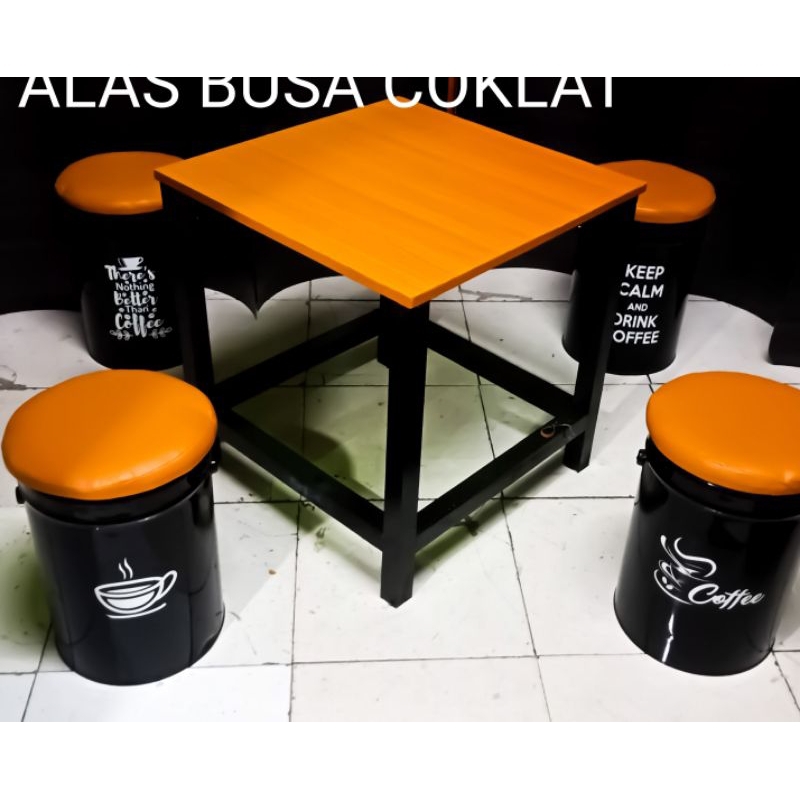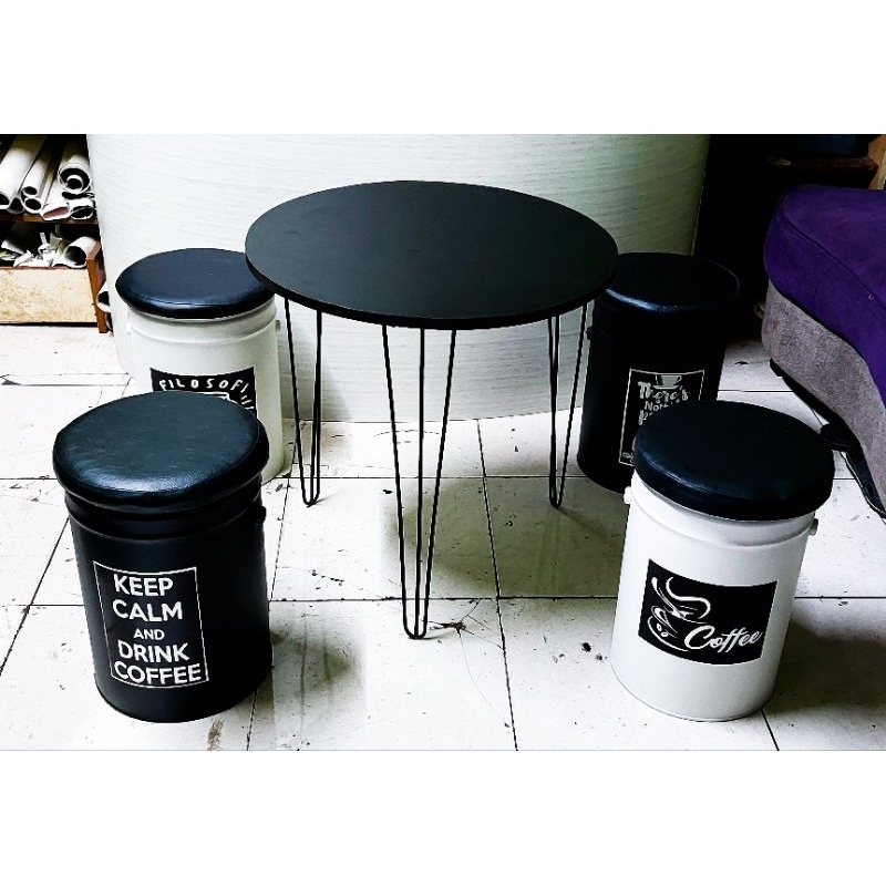 Set 4 Kursi 1 Meja Kafe Drum Kaleng Anti Air