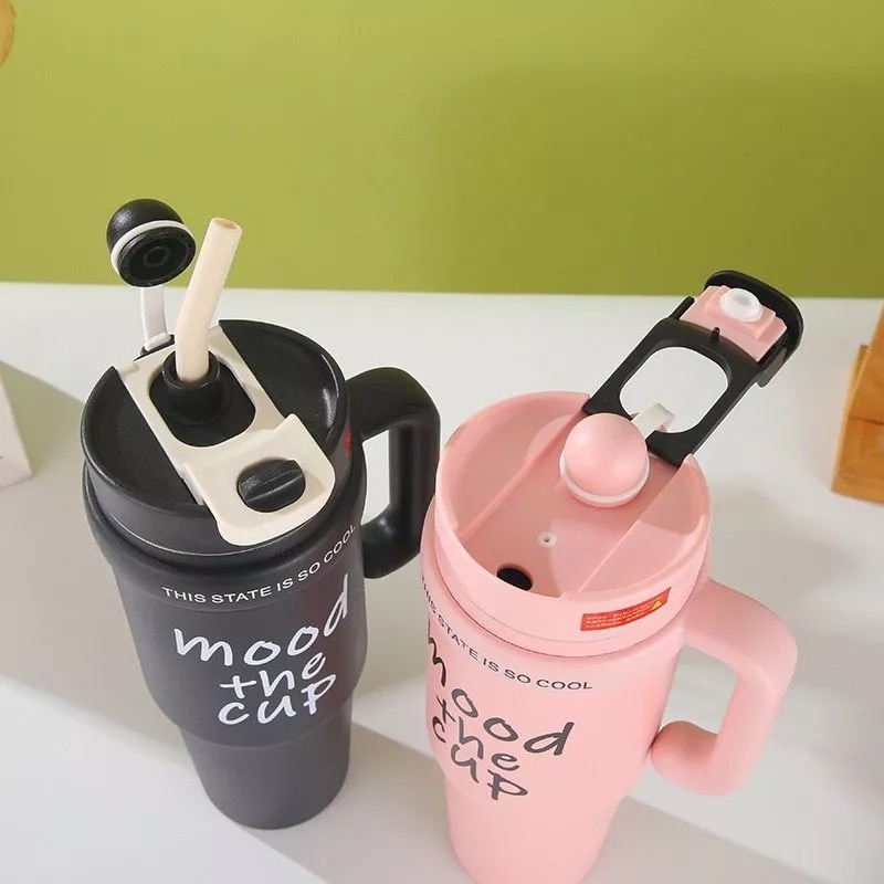 Mug Tumbler Stainless Steel 900ml Hot and Cold Anti Tumpah Free Sedotan Tumbler Gagang Jumbo 2 Cara Minum M 2015