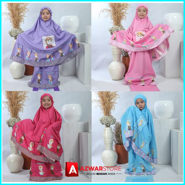 Mukena Anak Perempuan Motif Frozen Kids 4 Size 4 Warna Untuk 2 - 10 Tahun Lengkap Tas Dan Sajadah