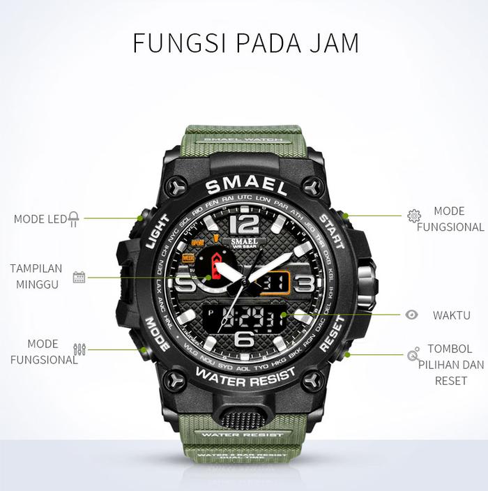 SMAEL JAM TANGAN SPORT ANALOG DIGITAL PRIA WANITA MODEL 1545D KACA STAINLESS STEEL TAHAN AIR 50M STRAP PU BERKUALITAS FI