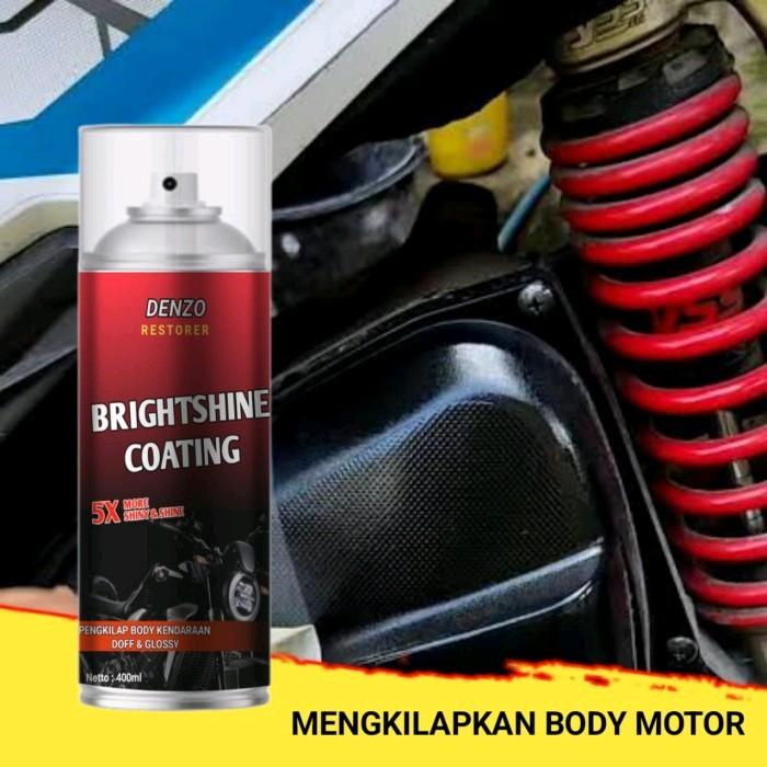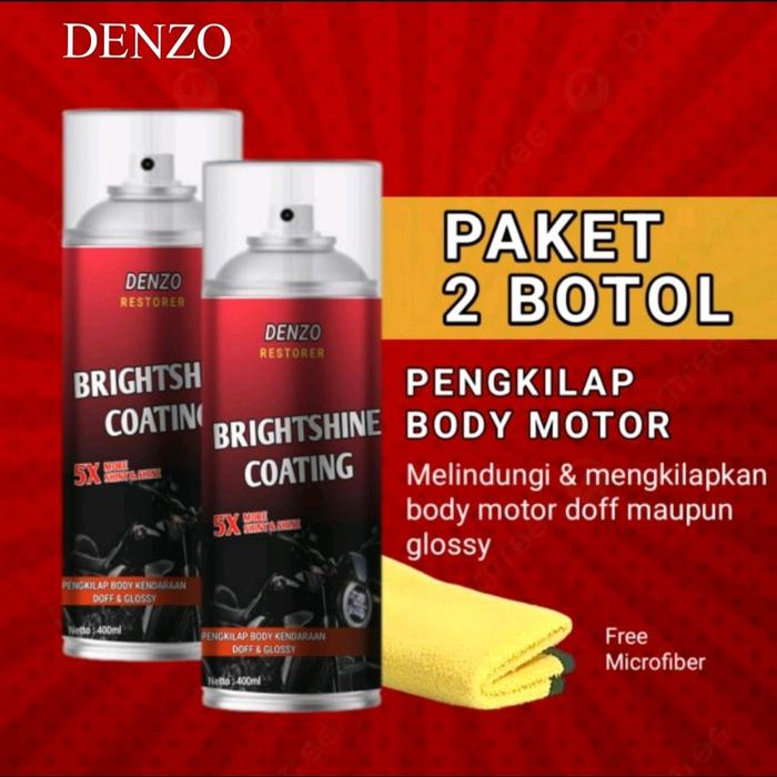 2PCS - DENZO BRIGHTSHINE COATING / Penghitam/Pengkilap Body Motor Glossy & Doff 400 ml + lap. - 2 botol + lap