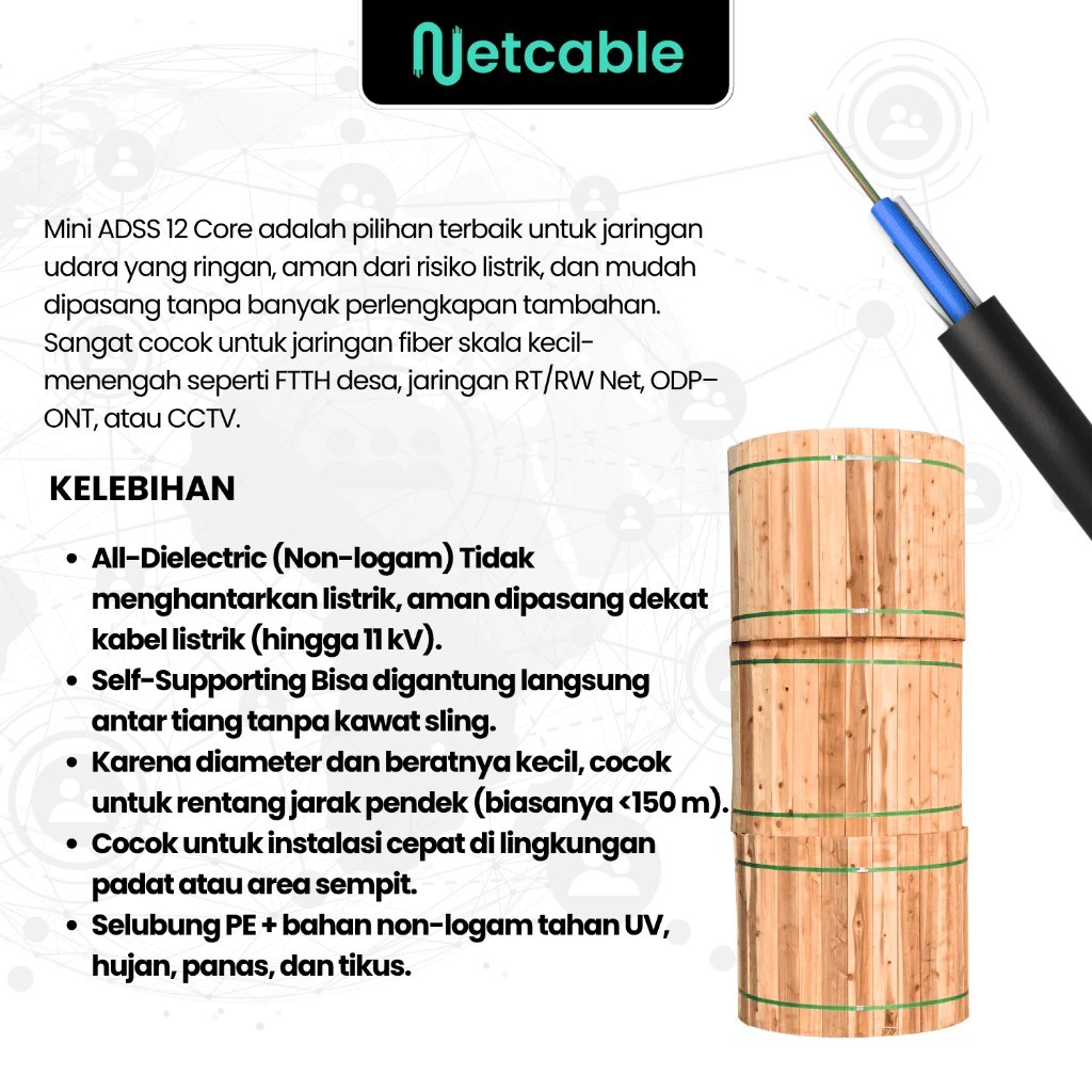 FLASH SALE NETCABLE KABEL FIBER OPTIK FO MINI ADSS CORE 6 CORE 12 CORE 24 Core PANJANG 2KM 2000M 4KM 4000M