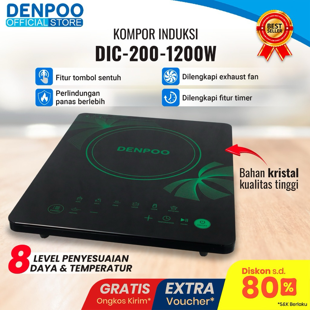 DENPOO KOMPOR LISTRIK INDUKSI TOUCH SCREEN LOWWATT DIC 200-1200