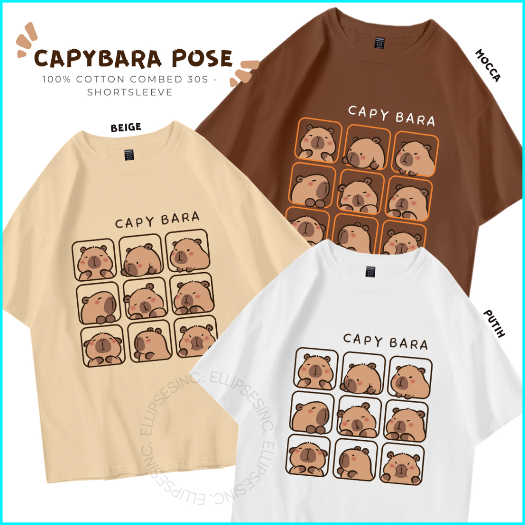 Ellipsesinc Kaos Oversize Lengan Pendek Couple Keluarga Anak Kids Dewasa Capybara Pose
