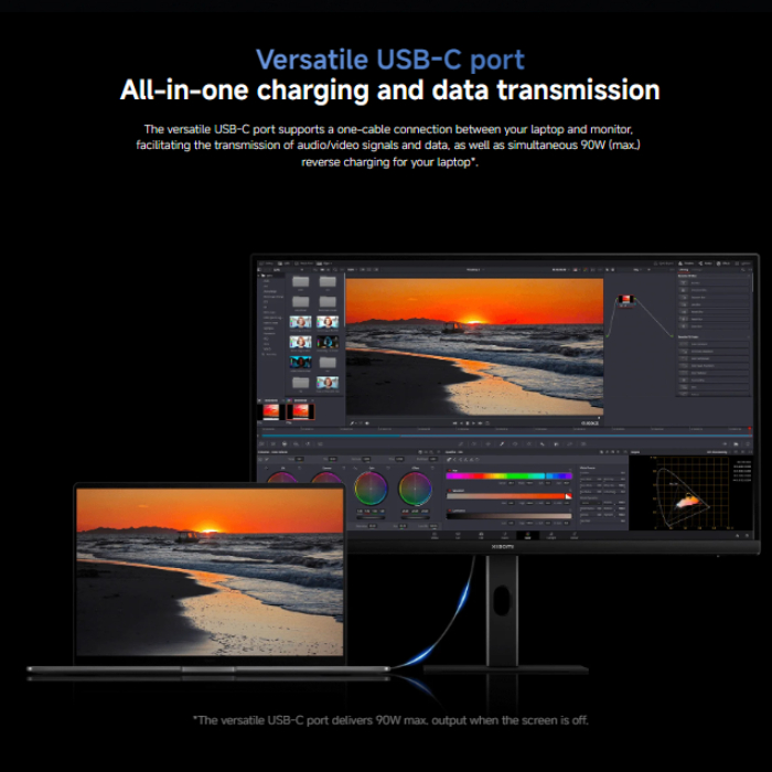 Monitor LED Xiaomi A27Ui 27" IPS Hard Screen 4K UHD 3840x2160 HDMI x2 DP x1 USB-C 90w 4K UHD image quality USB-C reverse