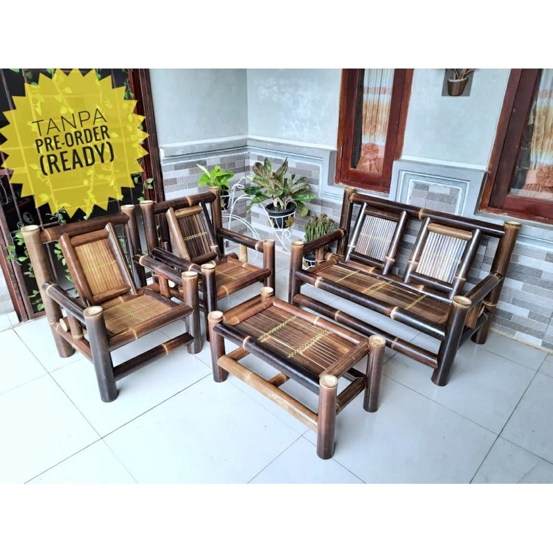 kursi standar bambu hitam (READY tanpa P.O ) bangku tamu 1 set sprti di foto 4 barang