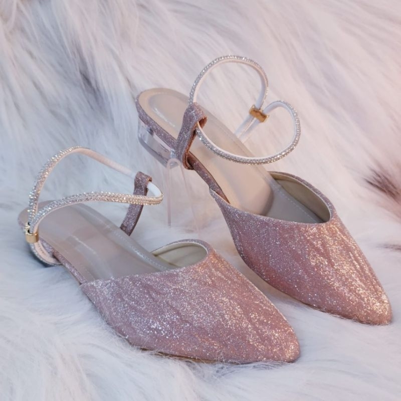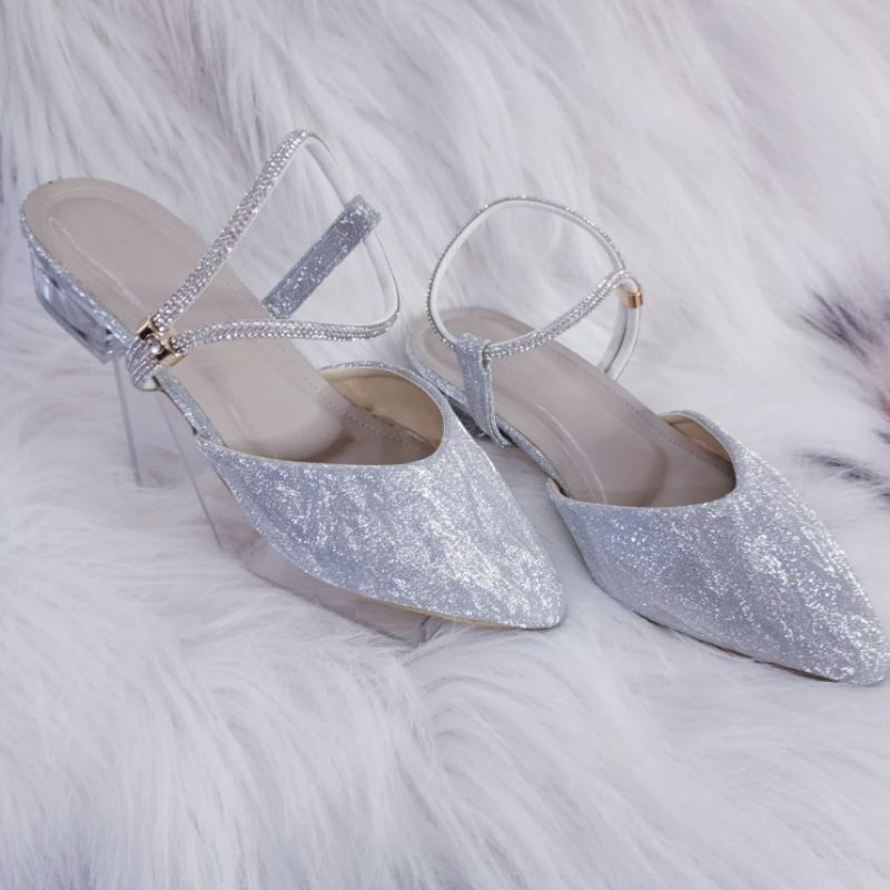 Series BH 02 Sepatu Pesta Tali Jeli Permata Transparan Sandal Heels Wanita Hak Kaca 5 Cm