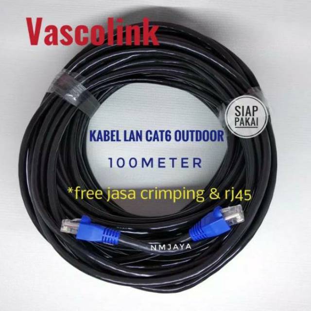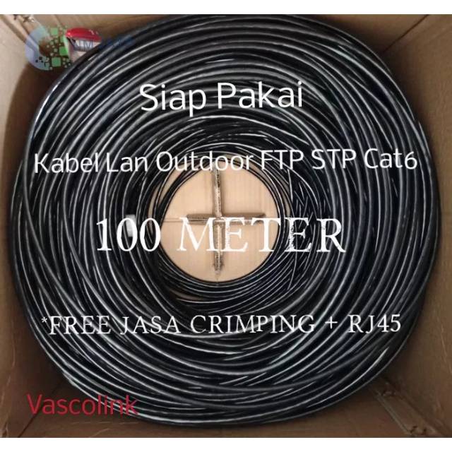 FLASH SALE Kabel Lan Outdoor 100 Meter FTP CAT6 Siap Pakai dicrimping rj45 besi dan plugbooth Vascolink Hitam