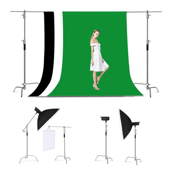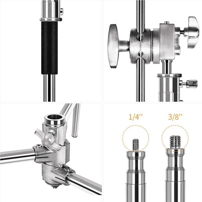 COSTA CS 330 C-STAND LIGHT STAINLESS STEEL WITH BOOM ARM BACKGROUND BESI LAMPU LOGAM METAL - BLACK