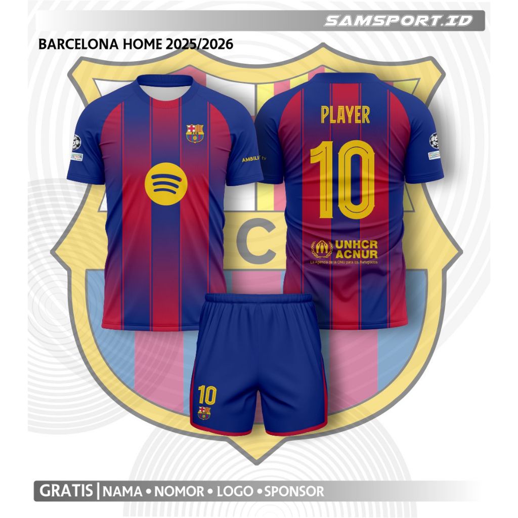 Jersey Bola Barclona FullPrinting Gratis tambah Nama dan nomor setelan dewasa/anak