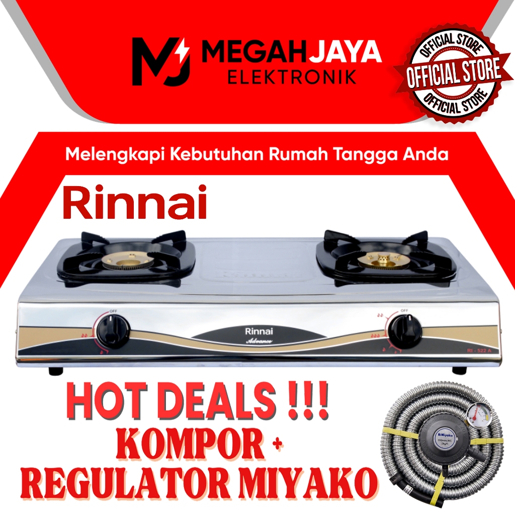 [ READY] PAKET HEMAT KOMPOR STAINLESS STEEL + REGULATOR RINNAI RI 522A / RI-522A / RI 522 A (2 TUNGKU)