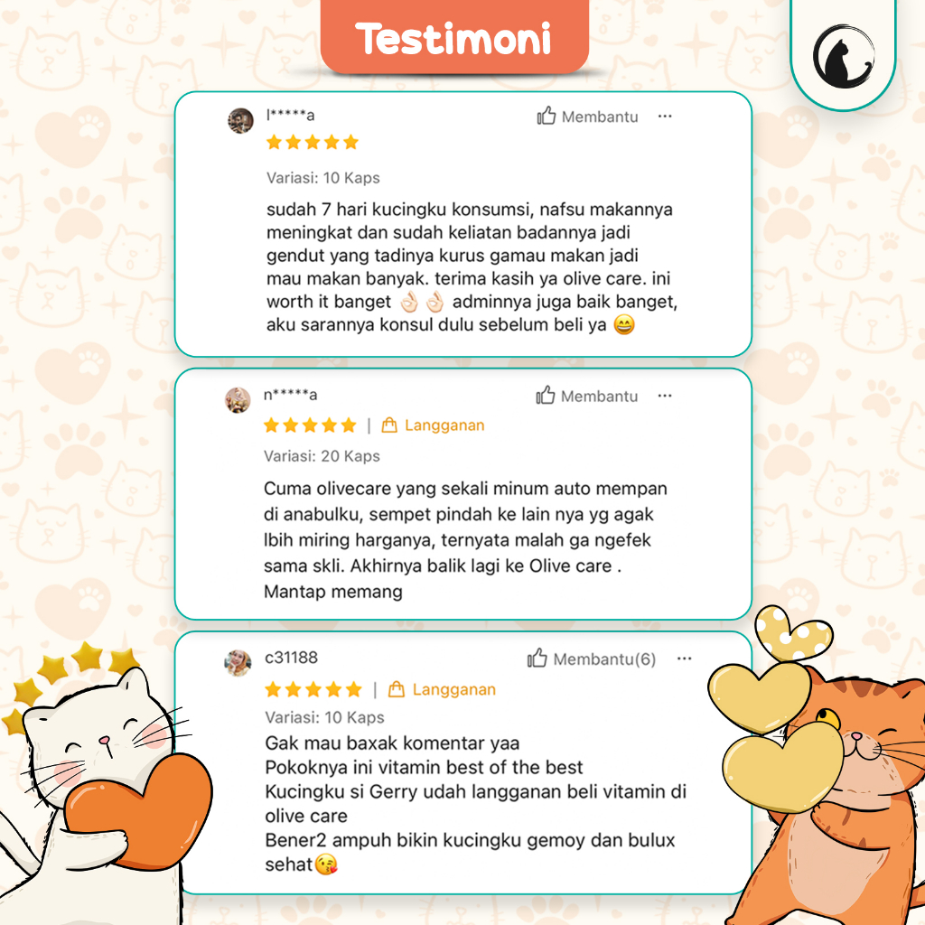 Olive Care Vitamin Kucing NAFSU MAKAN untuk Nafsu Makan, Gemukin Badan, Bulu Rontok, Daya Tahan Tubuh dan Konstipasi