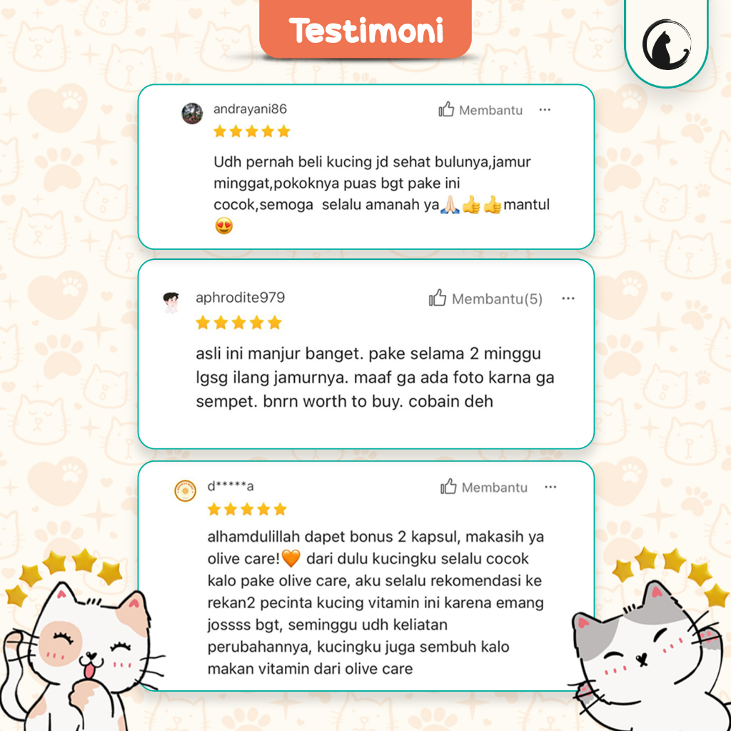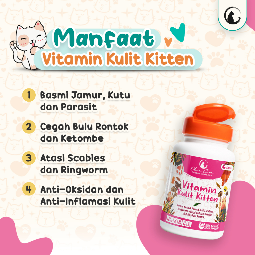 Olive Care Vitamin Kucing MASALAH KULIT KITTEN untuk Bulu Rontok, Jamur, Kutu, Scabies, Ringworm, Ruam dan Radang Kulit