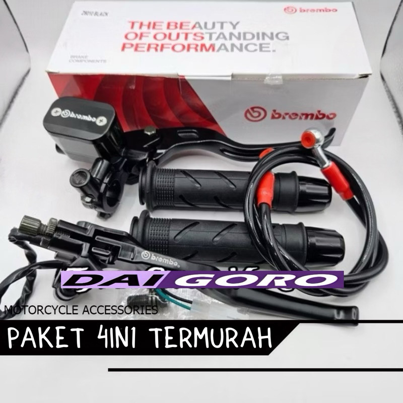 [ Paket 4in1 Murah ] Master Rem Kotak Plus Selang Rem Thailand 95cm Plus Jalu Stang Cnc Plus Handgrip Grip Sisik Univers