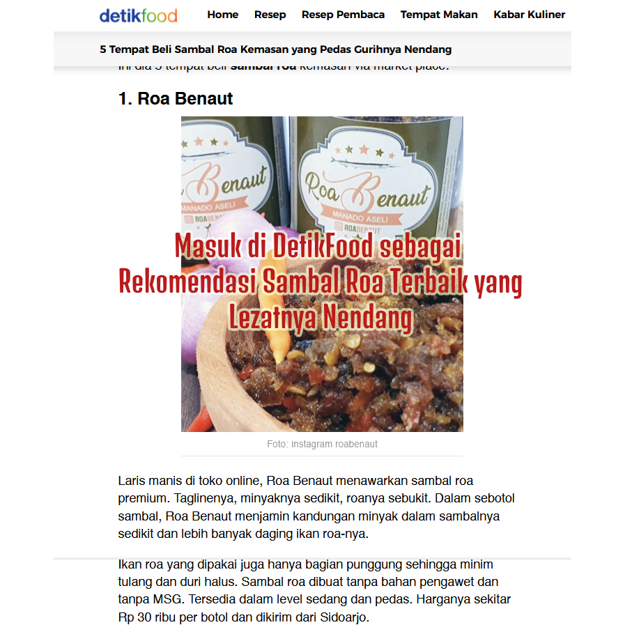 Sambal Ikan Roa Pedas Minyak Sedikit & Tanpa Pengawet dan MSG