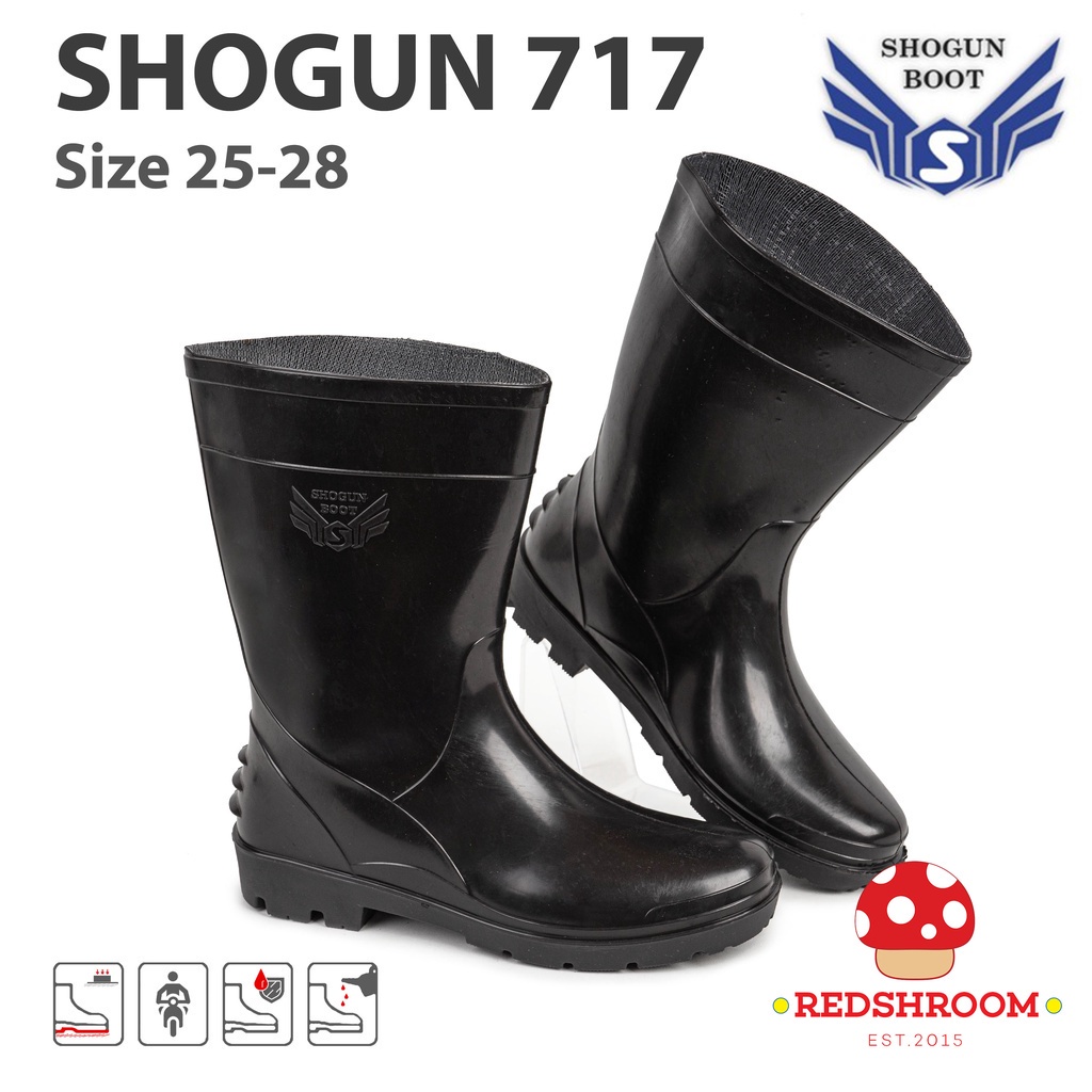 Sepatu Boot Pendek SHOGUN 717 Hitam Boots Karet Lokal Ringan Anti Slip Kontruksi