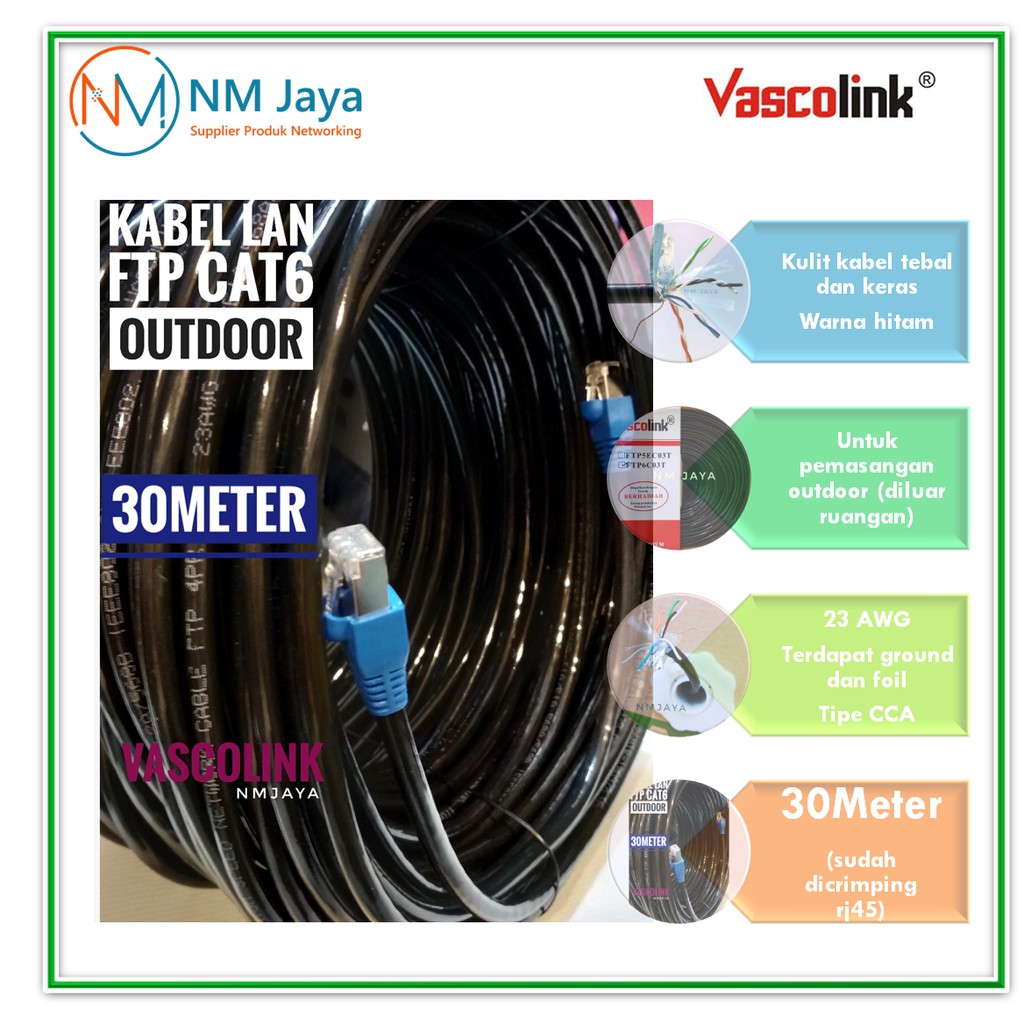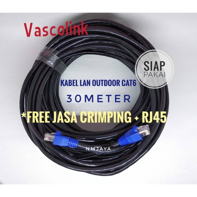 FLASH SALE Kabel Lan Outdoor 30 Meter FTP CAT6 Siap Pakai Dicrimping rj45 besi dan plugbooth VascolinK Hitam