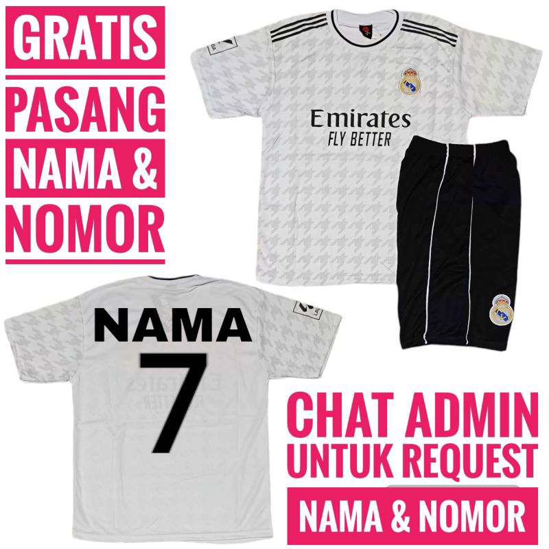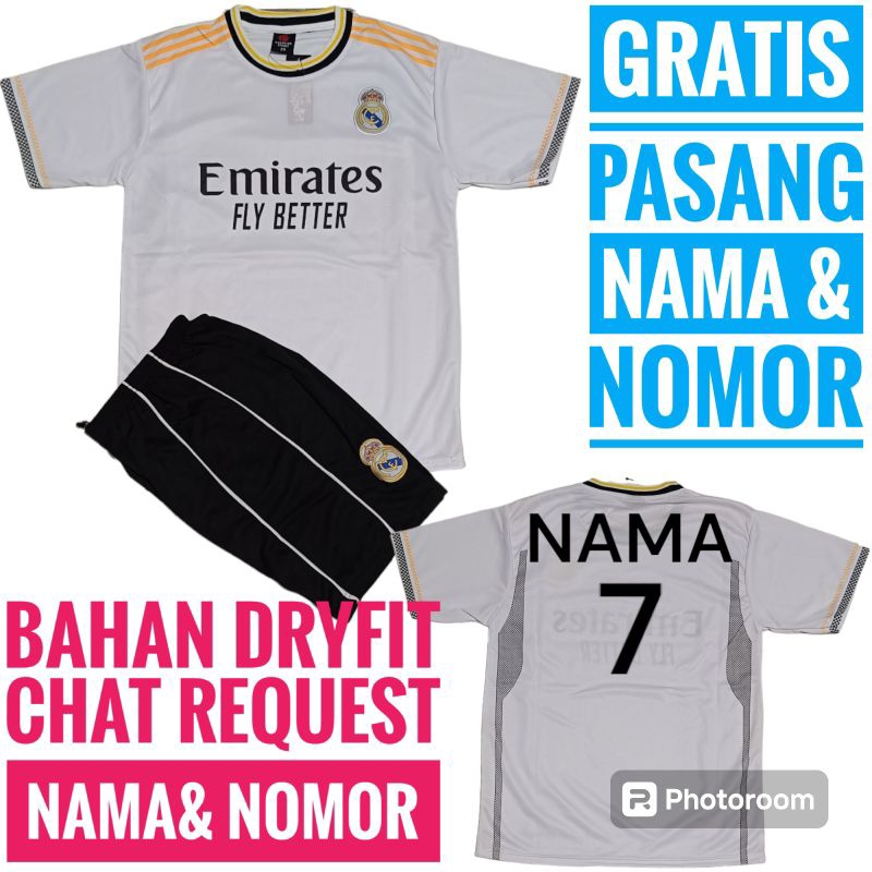 setelan Jersey REAL -MADRID /SETELAN JERSEY BOLA INGGRIS /BAHAN DRYFIT UNTUK ANAK UMUR 1-12 thn