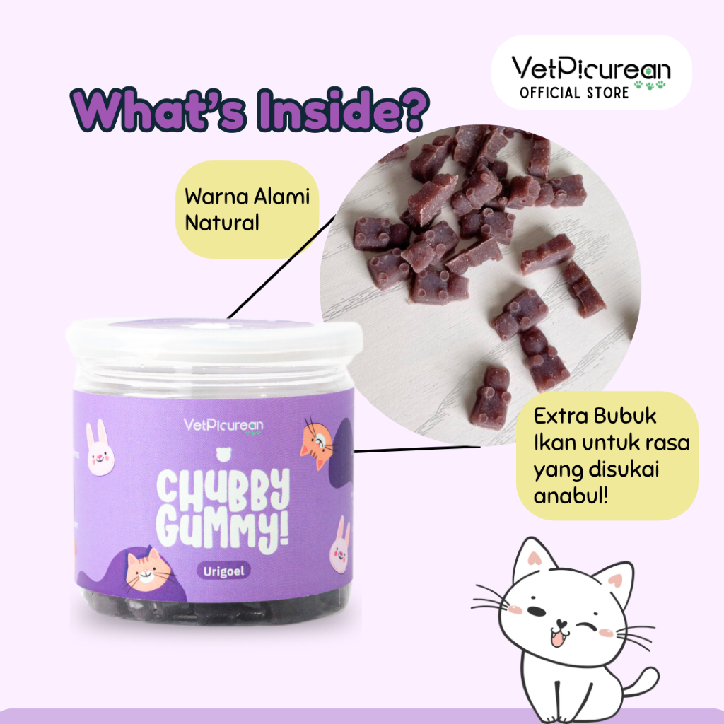Vetpicurean Chubby Gummy Urigoel | Vitamin Urinary Kucing Anjing untuk FLUTD & Kencing Batu