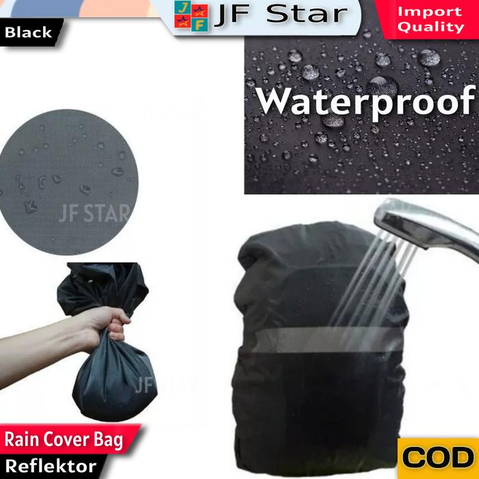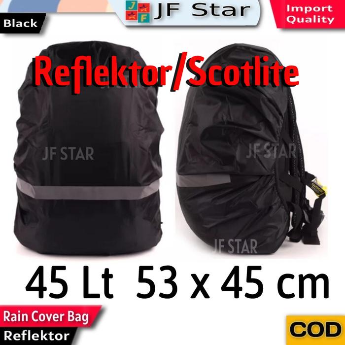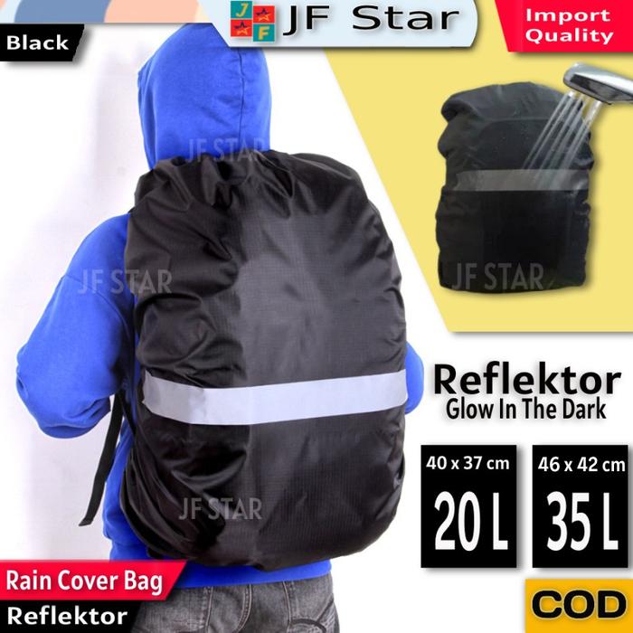 RAIN COAT COVER BAG TAS RANSEL PENUTUP ANTI AIR HUJAN REFLEKTOR HITAM - 35 LT