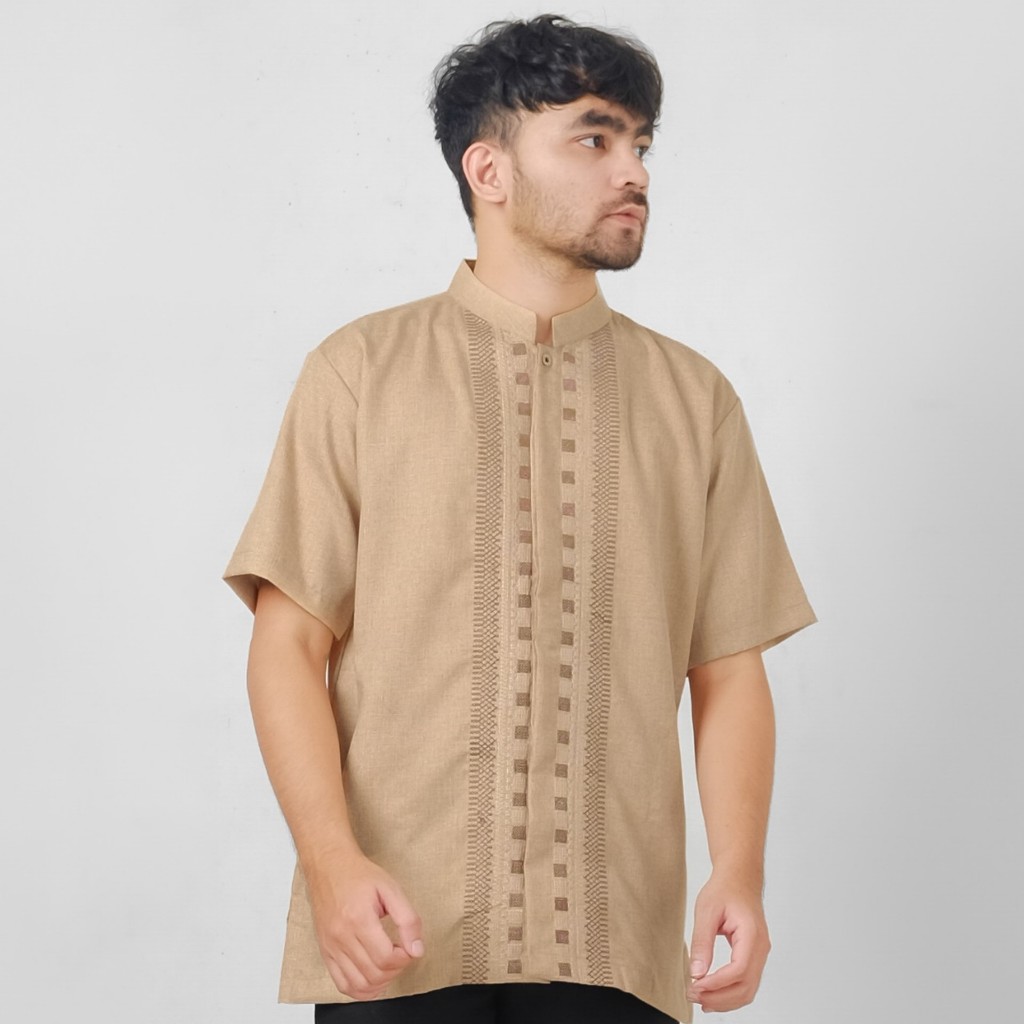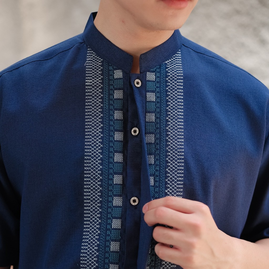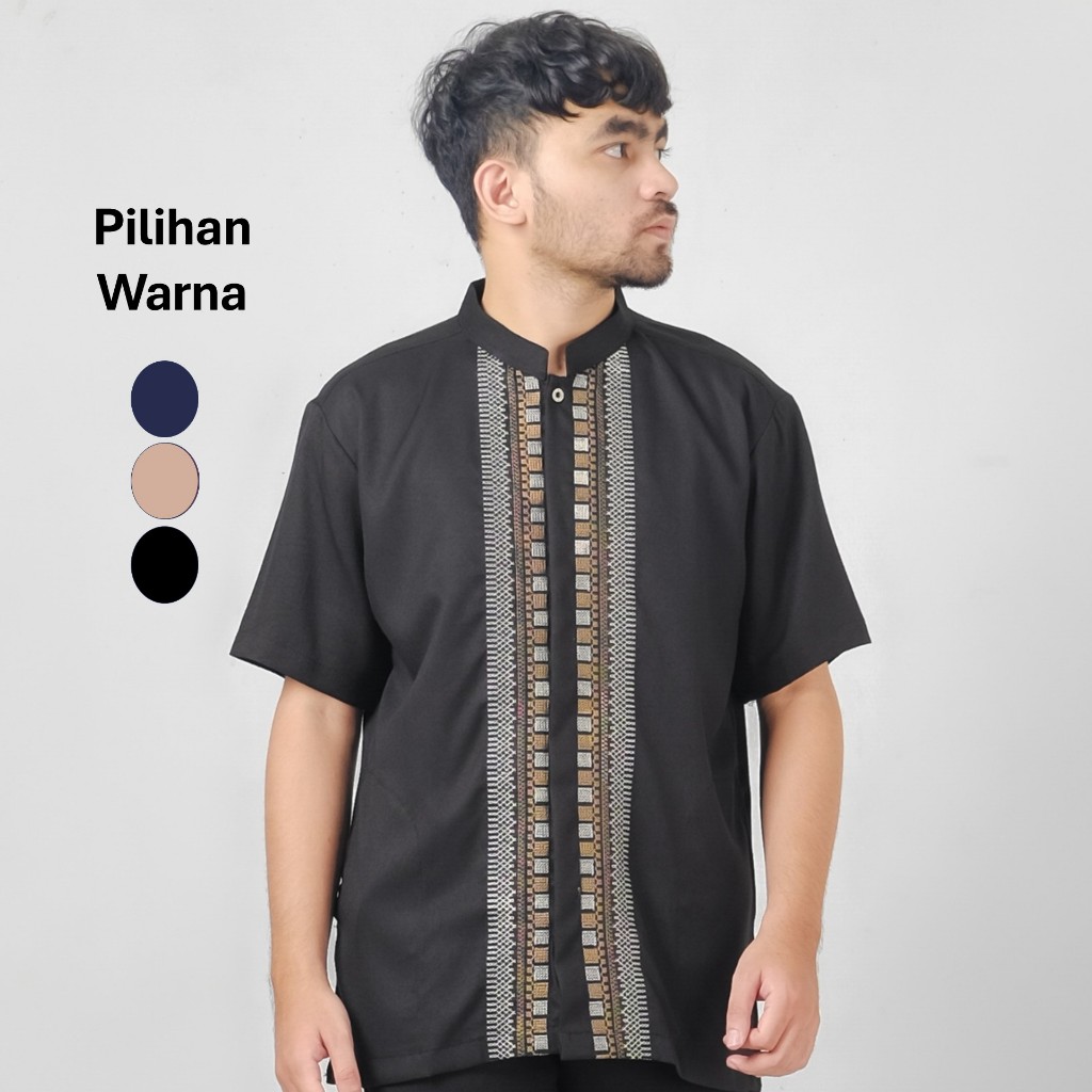 Uzma Baju Koko Kemko Muslim Pria Katun Madinah Lengan Pendek Warna Navy Krem Hitam