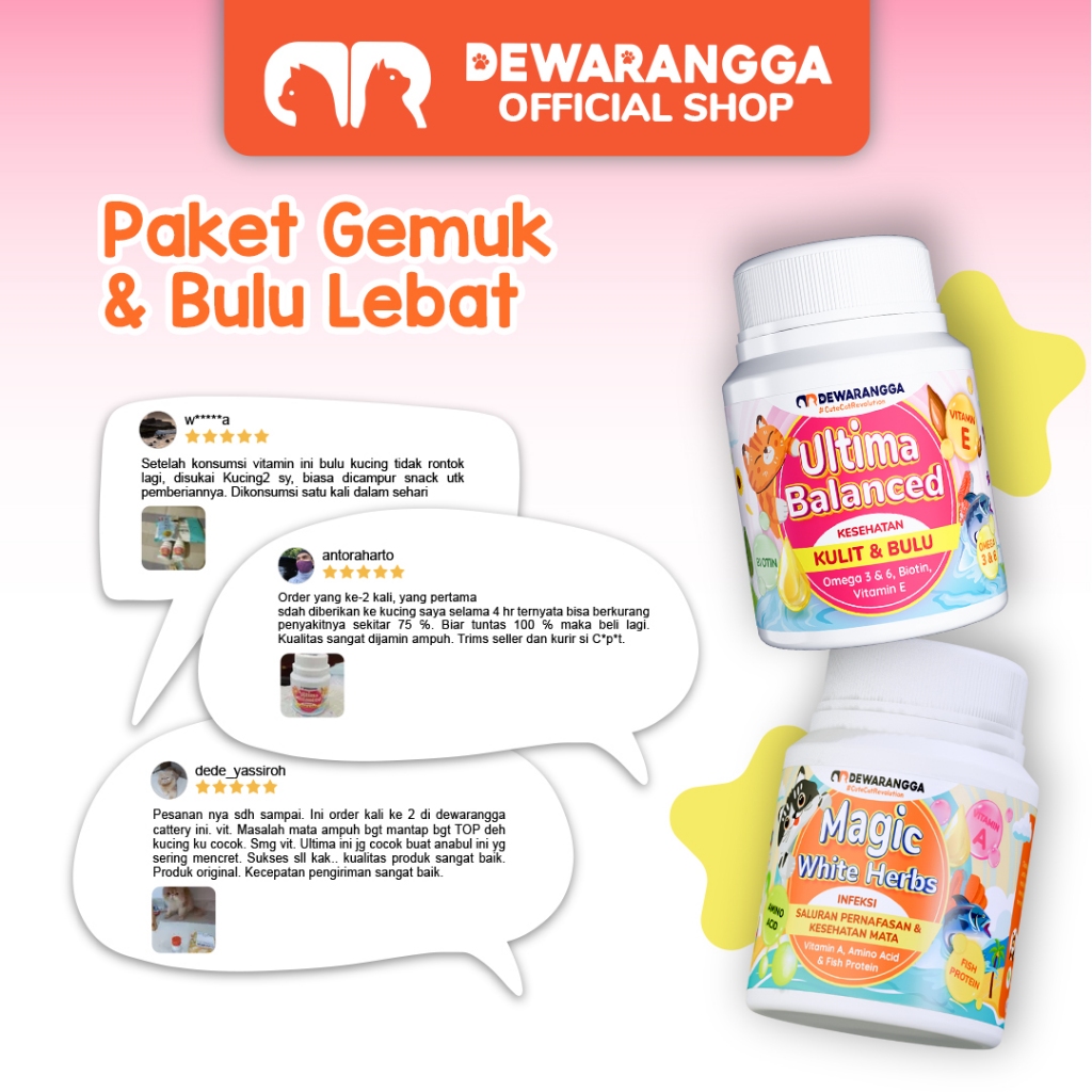 Dewarangga Paket Vitamin Kucing GEMUK & BULU LEBAT untuk Meningkatkan Nafsu Makan, Melebatkan Bulu dan Penggemuk Kucing