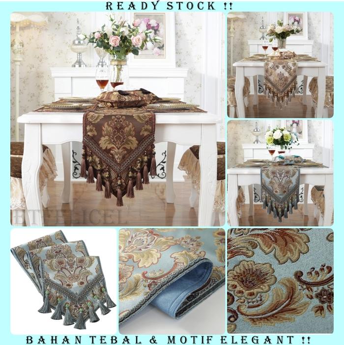 EUROPEAN TABLE RUNNER / TAPLAK MEJA TAMU TEBAL BORDIR TIMBUL MEJA MAKAN BUFFET PREMIUM ELEGANT PANJANG TASSEL RUMBAI - COFFEE, MEDIUM