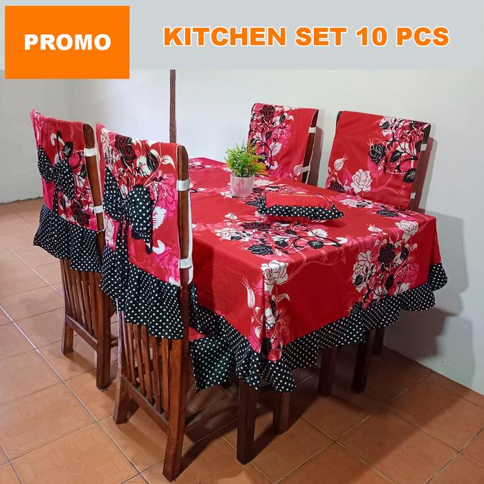 PAKET KITCHEN SET 10 PCS TAPLAK MEJA MAKAN SARUNG COVER KURSI KERUSI KOTAK TEMPAT TISU TISSUE ANEKA PERLENGKAPAN DEKORASI RUANG DAPUR SEDERHANA MODERN MEWAH RUMAH TANGGA MINIMALIS MURAH - PURPLE ALAM