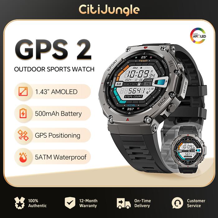 【PRODUK BARU】CITIJUNGLE SMARTWATCH GPS2, LAYAR AMOLED HD, GPS TERPASANG, TAHAN AIR HINGGA 50 METER (5ATM), DAYA TAHAN BA
