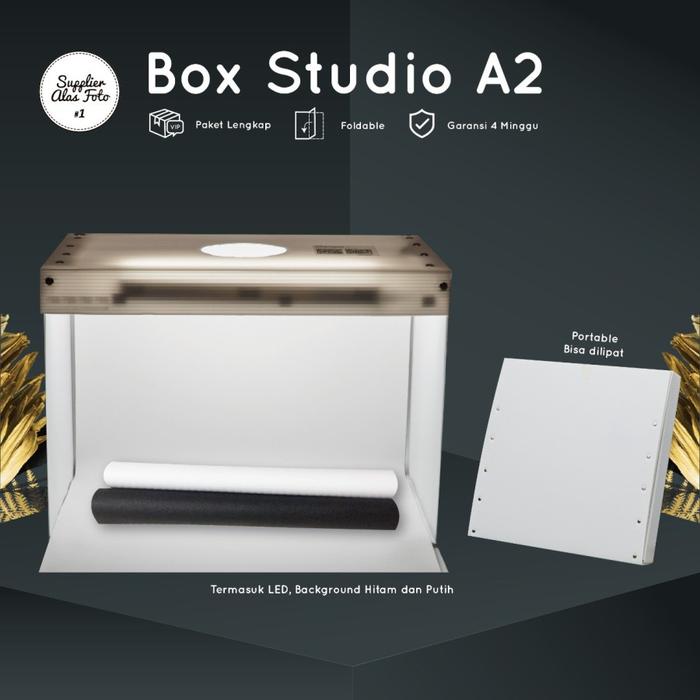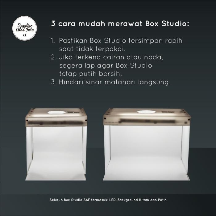 SAF STUDIO MINI BOX PHOTO UKURAN A2 - KOTAK FOTO KECIL DENGAN LED, BACKGROUND HITAM & PUTIH, MATERIAL HARD COGURATED PLASTIC, FOLDABLE, GARANSI 4 MINGGU, PENCAHAYAAN STABIL, COCOK UNTUK FOTO PRODUK