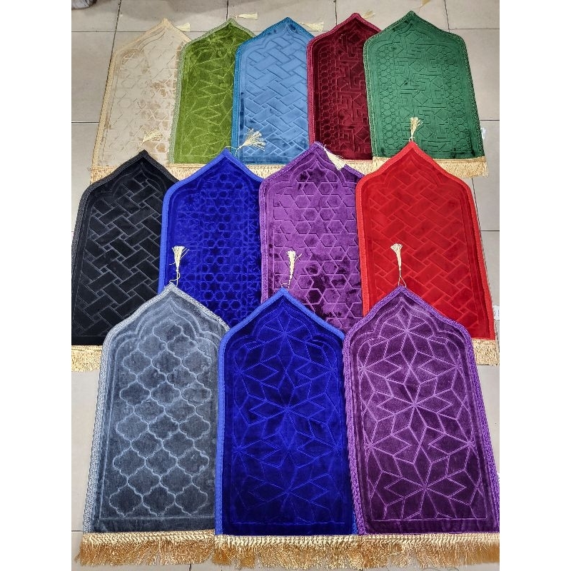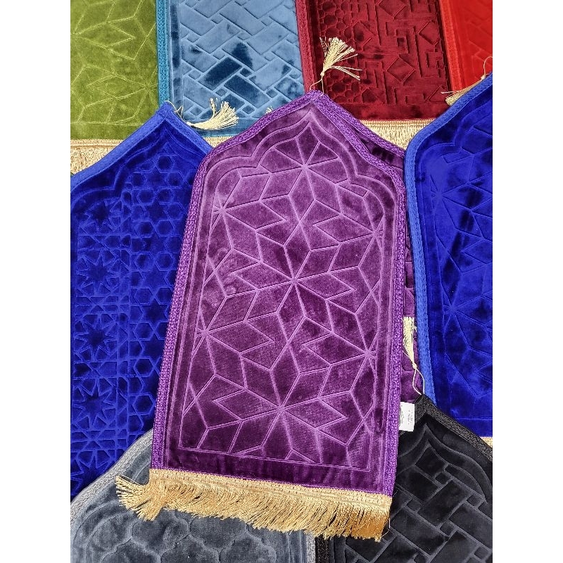 Sajadah Cutting Kubah Polos Warna Embos Printing Anti Slip 35x65cm