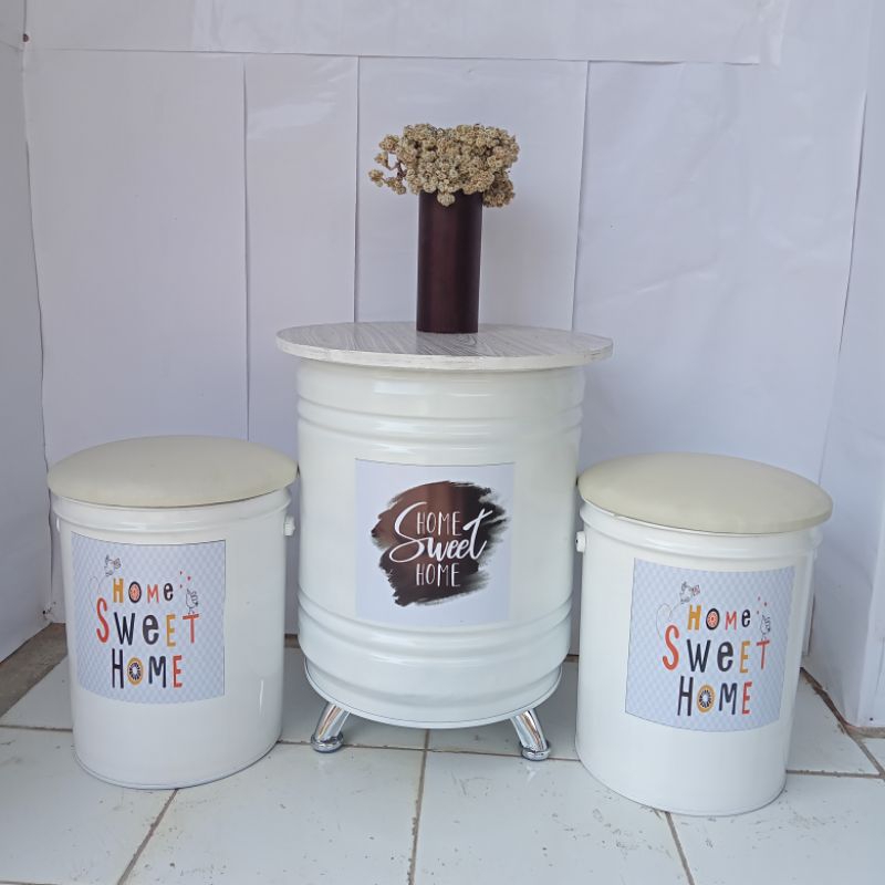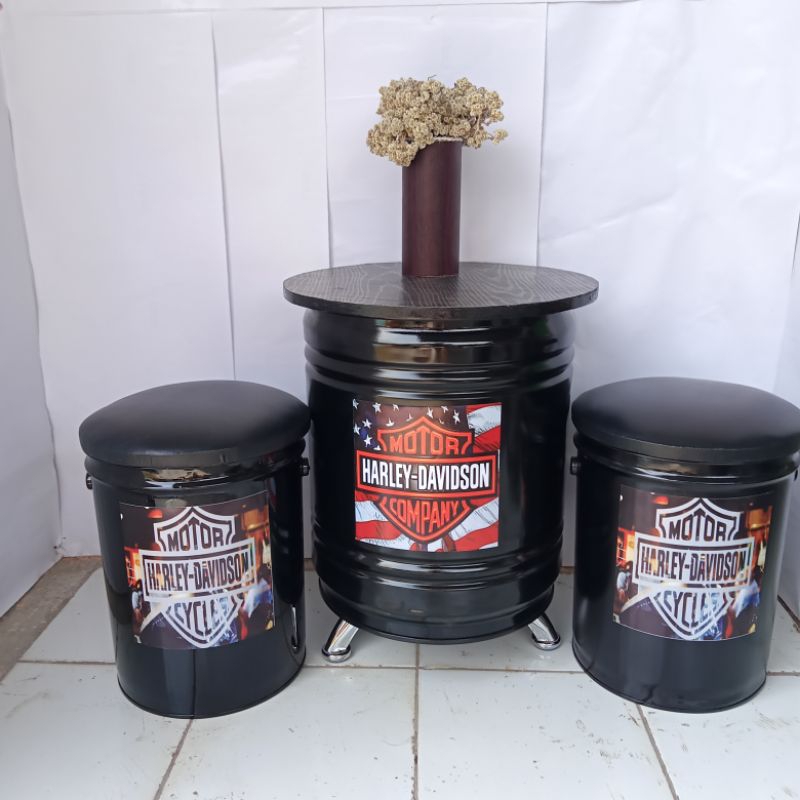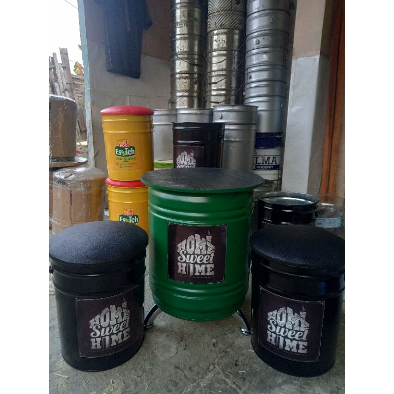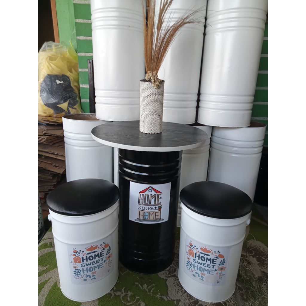 Paket 1 Set Kursi Tong Meja Drum Besi Mewah Kursi Cafe Kursi Teras (2 Bangku + 1 Meja)