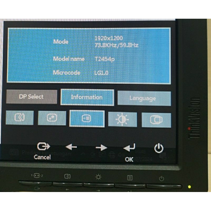 MONITOR LENOVO THINKVISION T2454p 24 INCH IPS FULL HD 73.8KHZ