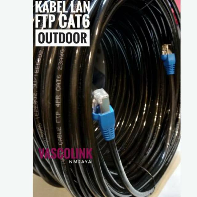 FLASH SALE Kabel Lan Outdoor 10M up to 100M FTP CAT6 Siap Pakai Dicrimping Rj45 Besi dan plugbooth Vascolink