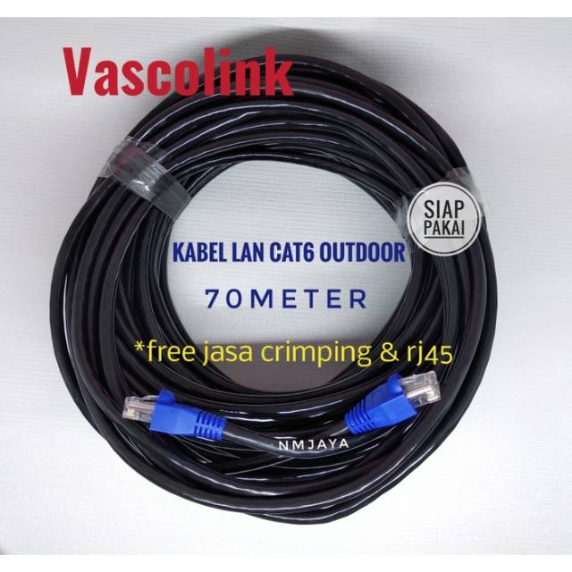 FLASH SALE Kabel Lan Outdoor 70 Meter FTP CAT6 Siap Pakai Dicrimping rj45 besi dan plugbooth Vascolink Hitam