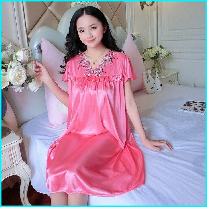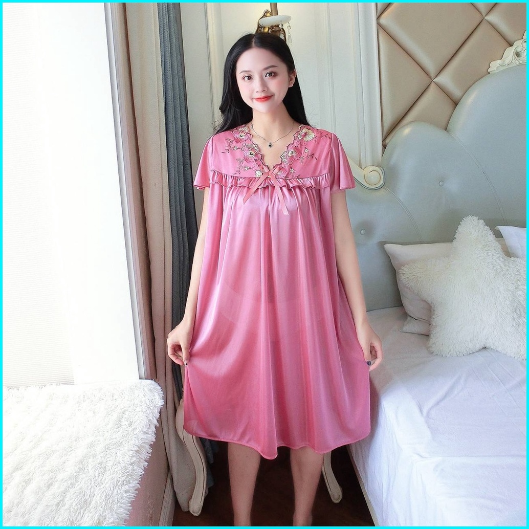 Redpink Daster Wanita Dewasa Jumbo Homewear Premium Mewah Import Jumbo Deep Renda Brukat Corak Flower Bunga Beatiful Wit