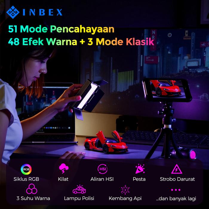 INBEX IPL17 RGB LIGHTING KONTEN PORTABLE LED LAMPU KREATOR VIDEO OUTDOOR UNTUK PONSEL KAMERA - ONLY RGB LAMPU
