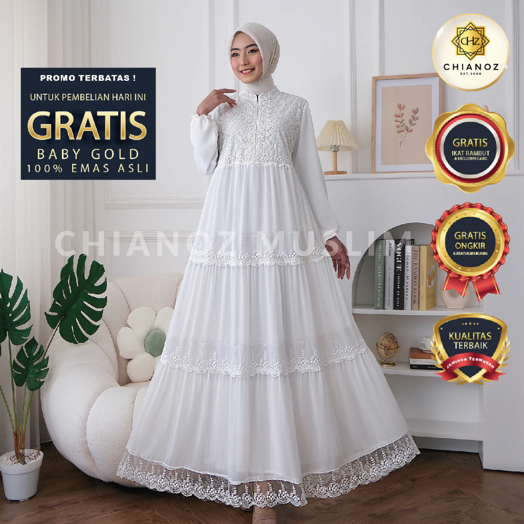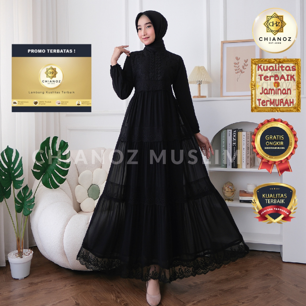 CHIANOZ Gamis Hitam Mewah Denada Dress Brukat Renda Baju Lebaran Umroh Haji Manasik Pesta Akad 923 922