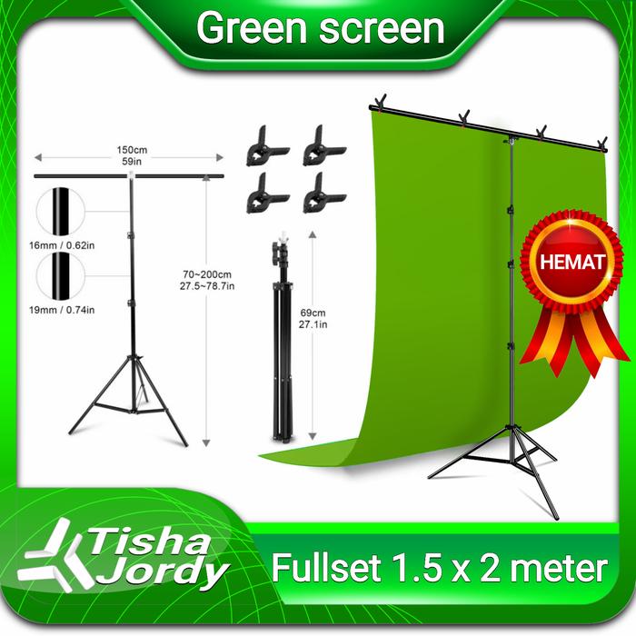 PAKET GREEN SCREEN CHROMA KEY GREENSCREEN BACKGROUND STUDIO PHOTOGRAFI - FULLSET 2X2M