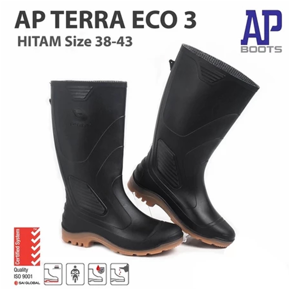 TURUN HARGA Sepatu Boot Tinggi AP Boots AP TERRA ECO 3 HITAM Anti Slip Lentur Lokal Karet Tangguh Kontruksi