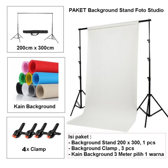 PAKET 2X3M BACKGROUND STAND BACKDROP KAIN PUTIH SPUNBOUND - TANPA KAIN
