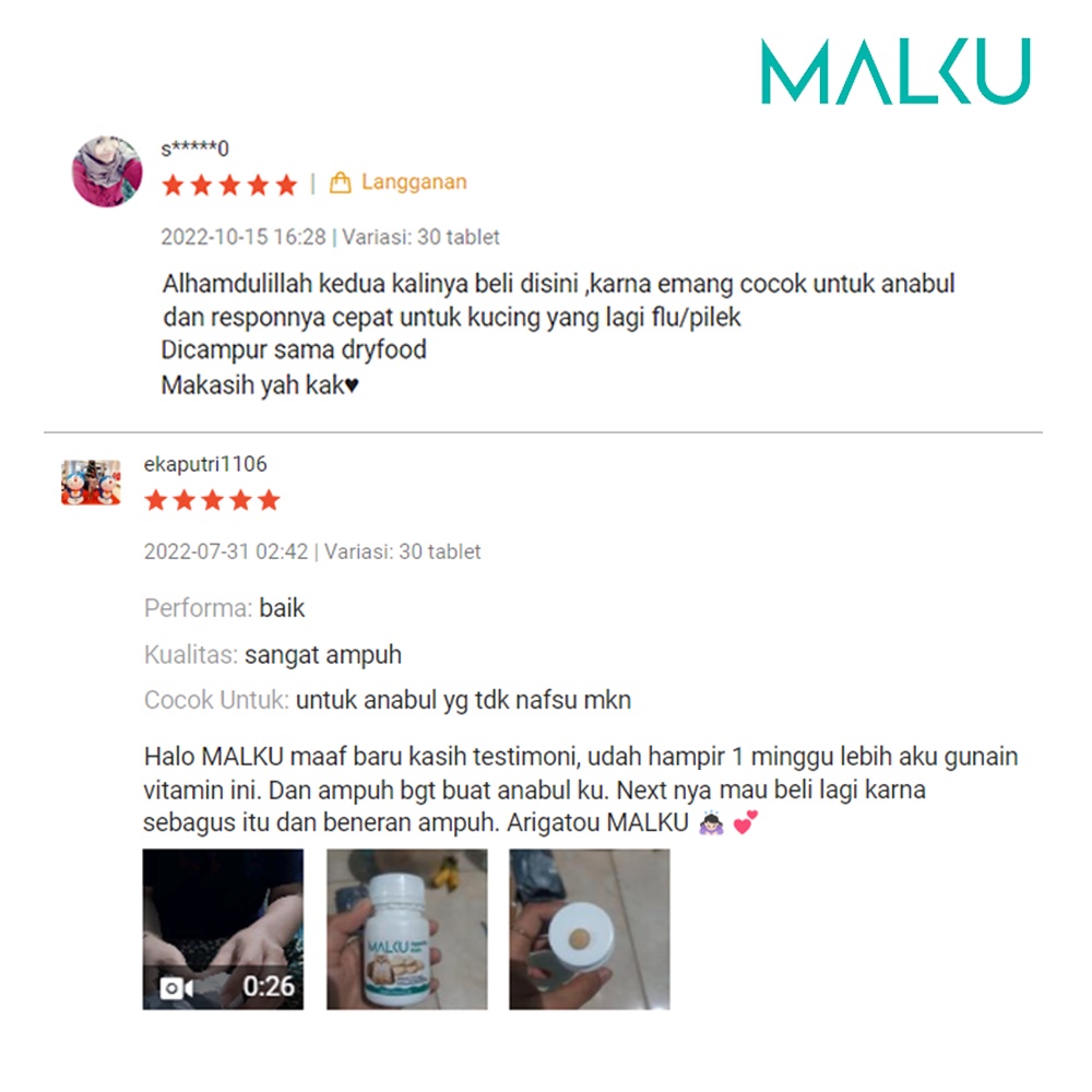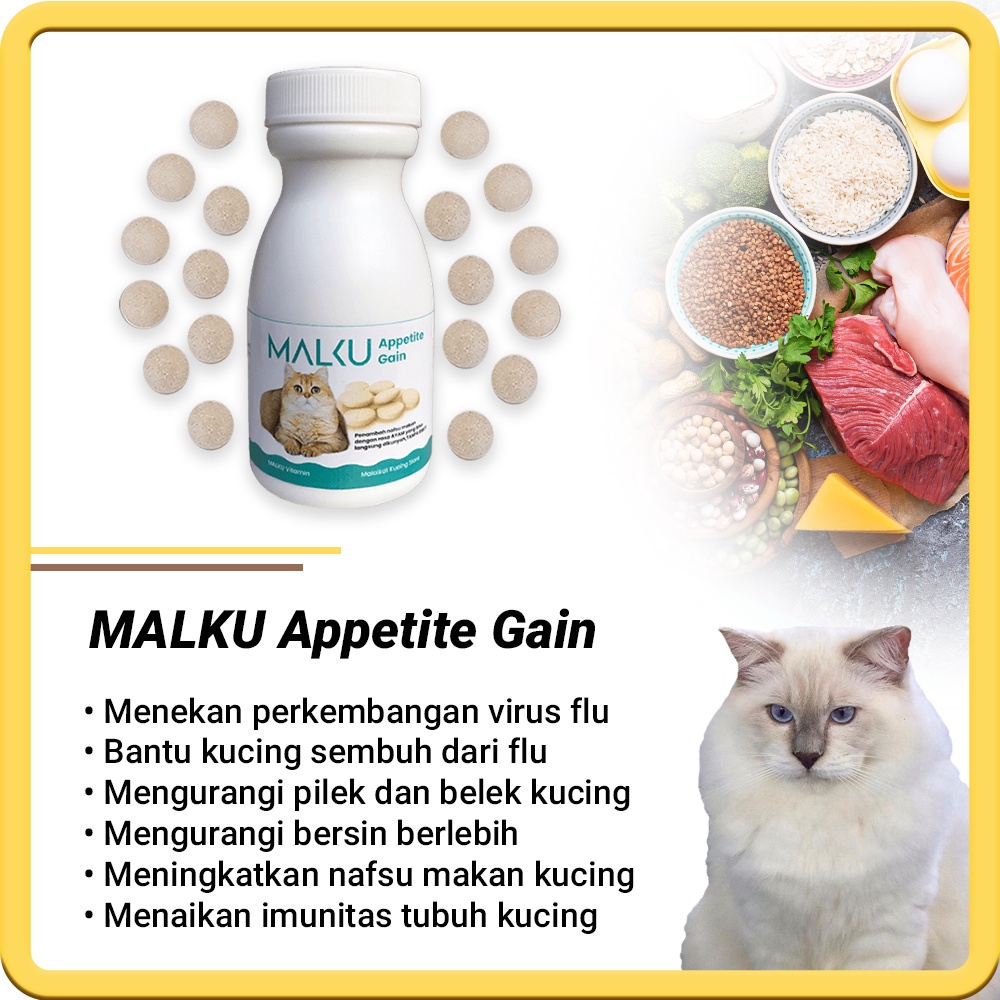 MALKU Appetite Gain - Vitamin Nafsu Makan Kucing, Flu Belek Kucing, & Pencernaan - MALKU Vitamin
